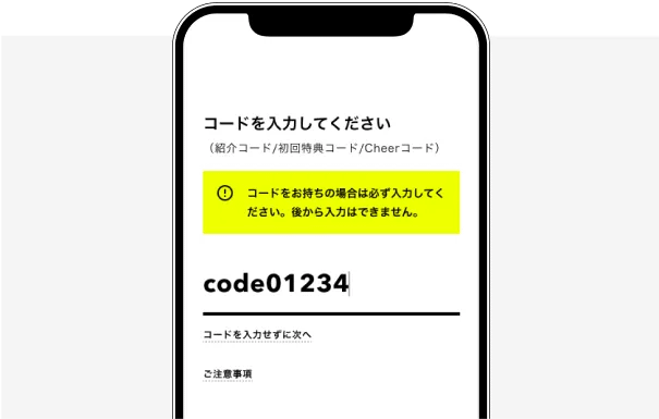 アプリにログインして、コード入力画面で紹介コード「kyRsEtkr」を入力