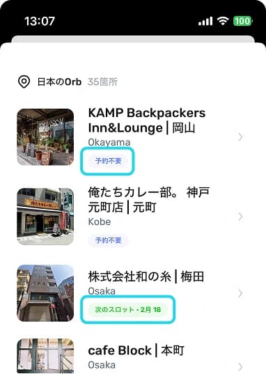 Orb認証を行うにはOrbが設置されている場所に出向く必要があるのですが、場所によっては事前に予約が必要な場合があります。